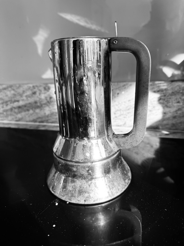 I like the Sage but I love the coffee pot. It’s more hands on. So simple, just 3 parts and it comes apart really easily. I used to have the more traditional, hexagonal coffee pot but bought this one on Ebay for a good price. It’s a design icon I think – designed by Richard Sapper. It’s very elegant – I do like the traditional moka pot too but love this one – the coffee tastes better in this than in a traditional moka.